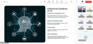 Лектором запропоновано інституційні рекомендації щодо ШІ з врахуванням основ відповідального використання ШІ; визначення, яке використання ШІ є прийнятним у межах кафедри бухгалтерського обліку. Освіта у сфері бухгалтерського обліку наголошує на етичних судженнях та розумінні обмежень ШІ для забезпечення відповідального використання та прийняття рішень.