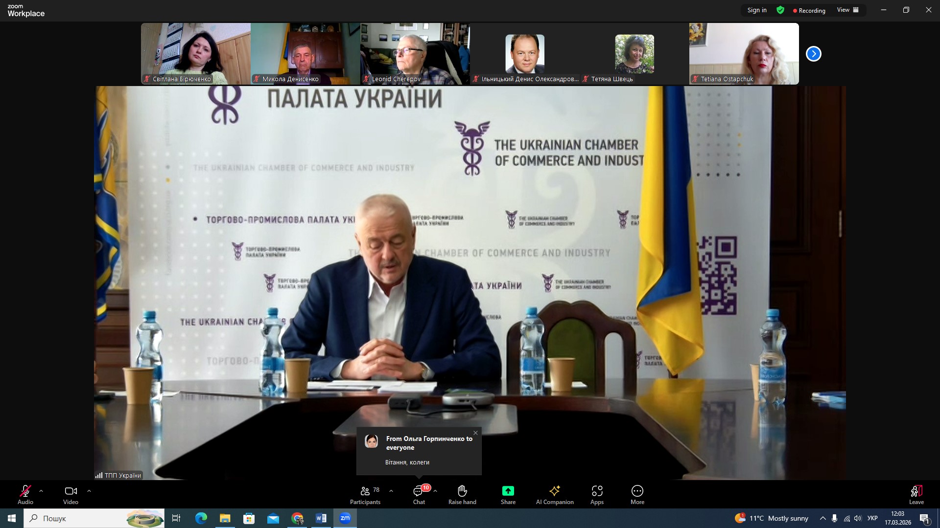 17 березня 2026 року викладачі та здобувачі вищої освіти кафедри менеджменту, бізнесу і маркетингових технологій Державного університету «Житомирська політехніка» взяли участь у засіданні Комітету підприємців малого та середнього бізнесу при Торгово-промисловій палаті України.