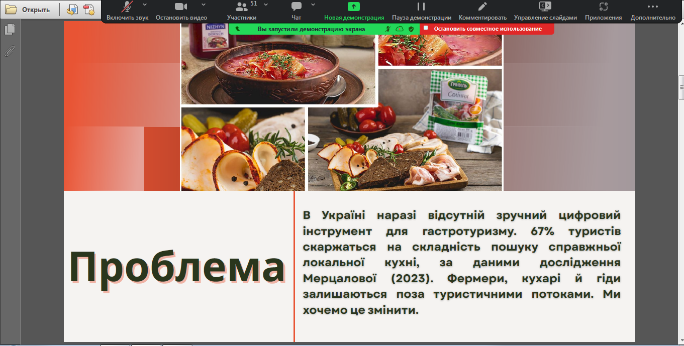 Конкурс об’єднав заклади вищої освіти України та міжнародних партнерів із Польщі, Грузії, Словаччини, Фінляндії, Норвегії та Румунії, що забезпечило мультикультурний академічний простір і високі стандарти експертного оцінювання. Важливо, що участь у заході передбачала проходження двоетапного відбору: на першому етапі здійснювалася інституційна селекція стартап-проєктів за критеріями інноваційності, обґрунтованості бізнес-ідеї та її економічної доцільності, тоді як фінальний етап включав публічний захист у форматі міжнародної онлайн-презентації з подальшою експертною оцінкою. Саме на цьому етапі учасники продемонстрували комплексні рішення, що поєднують концептуальні підходи, бізнес-моделювання, фінансово-економічний аналіз і візуалізацію проєктних ідей.