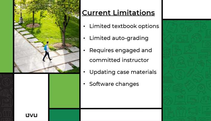 Поточними обмеженнями CAS є: обмежений вибір підручників, обмежене автоматичне оцінювання, вимагає залученого та відданого викладача, оновлення матеріалів кейсів, зміни у програмному забезпеченні.