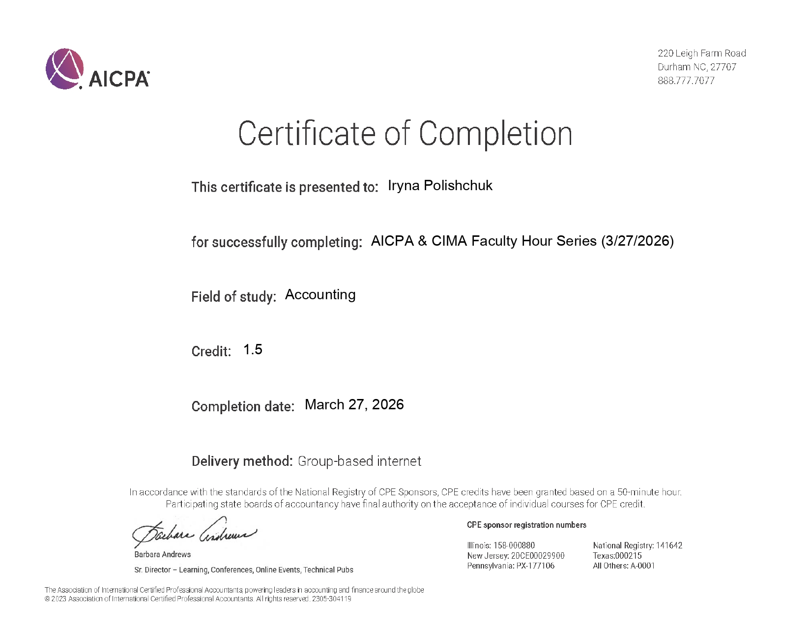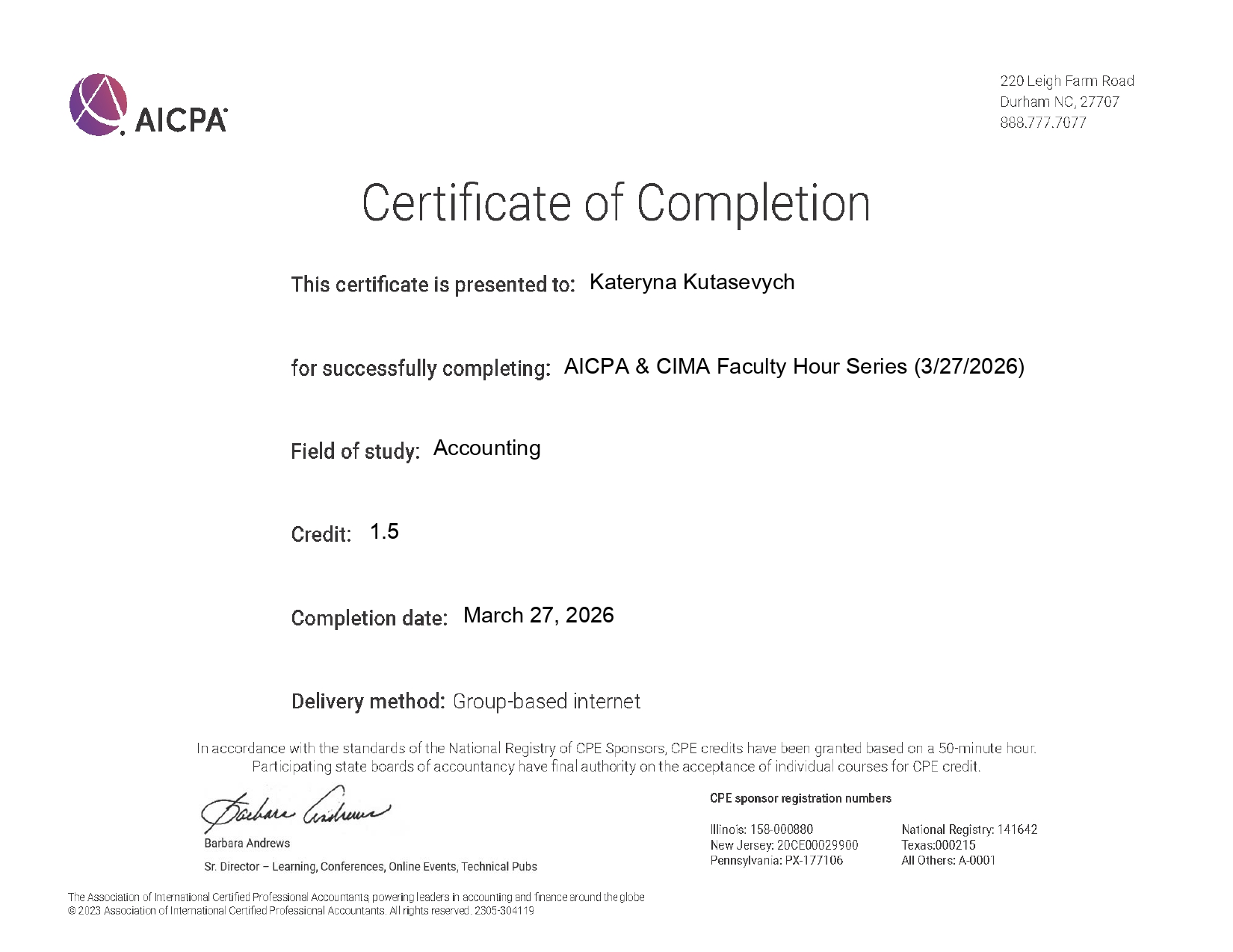 Прослухавши цікаву лекцію і взявши участь у подальшій дискусії, учасники наукового гуртка одержали сертифікати від AICPA & CIMA Faculty Hour Series.